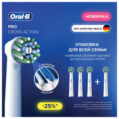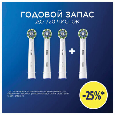 Насадки для электрической зубной щетки КОМПЛЕКТ 4 шт. ORAL-B (Орал-би) Cross Action EB50RX, 80348194