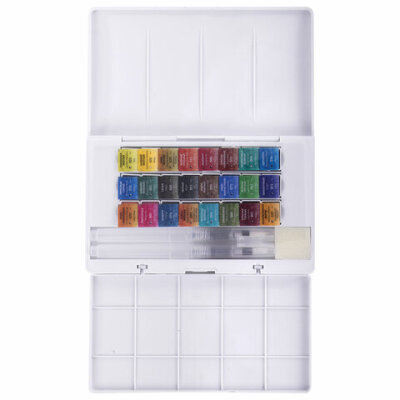 Акварель художественная кюветы НАБОР 24 цвета по 3,5 г, пластиковый кейс, BRAUBERG ART CLASSIC, 191770