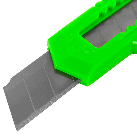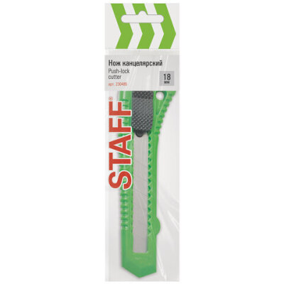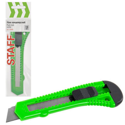 Канцелярский нож с фиксатором STAFF - инструмент, который поможет в резке бумаги, тонких пластиков, картона и прочих материалов. Изделие хорошо проявляет себя как при периодической эксплуатации, так и в ходе продолжительной работы.