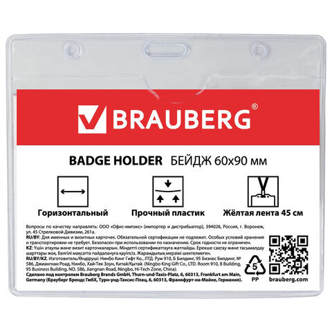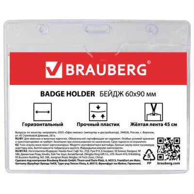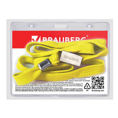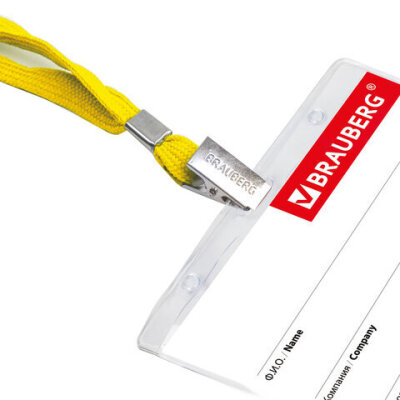 Бейдж горизонтальный (60х90 мм), на желтой ленте 45 см, BRAUBERG, 231154