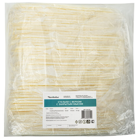 Тапочки одноразовые белые с закрытым мысом, КОМПЛЕКТ 25 пар/уп., 43 размер, ЧИСТОВЬЕ, 00-225