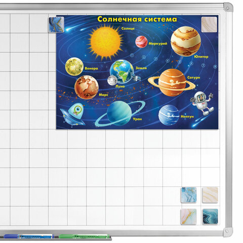 Квадратные стеклянные магниты BRAUBERG оригинального дизайна надежно прикрепят листы бумаги к магнитно-маркерной поверхности досок, флипчартов и холодильников.