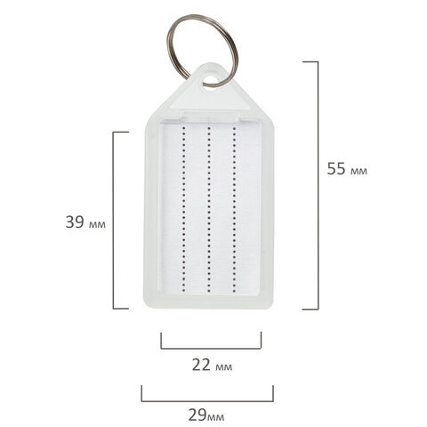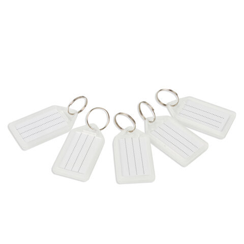 Бирки для ключей КОМПЛЕКТ 20 ШТ., длина 55 мм, инфо-окно 39х22 мм, ПРОЗРАЧНЫЕ, BRAUBERG, 237496