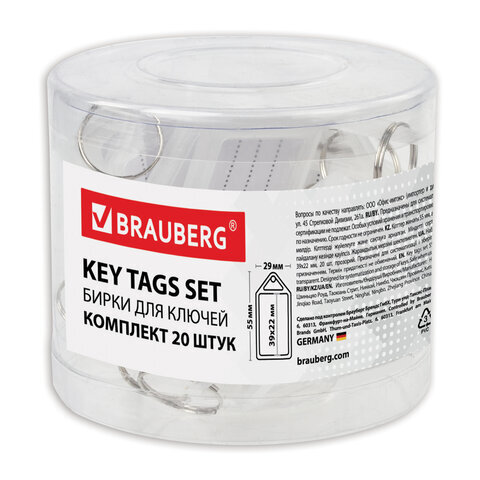 Бирки BRAUBERG предназначены для идентификации ключей от разных помещений.