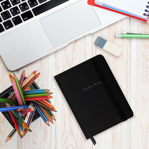 Блокнот с резинкой в клетку 96 л., МАЛЫЙ ФОРМАТ А6, 109х148 мм, твердая обложка, BRAUBERG, "Minimal", 116333