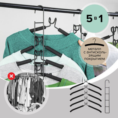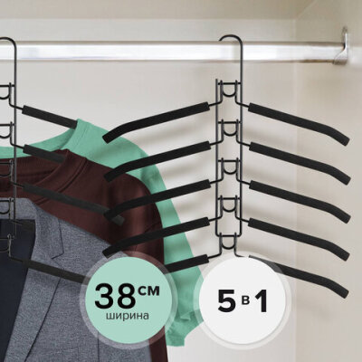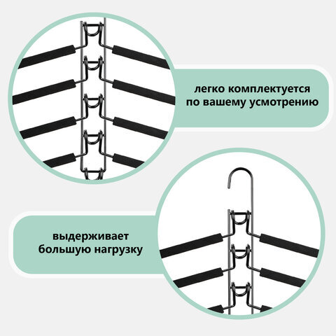 Вешалка-плечики трансформер, 5 плечиков, металл с покрытием, черные, BRABIX ULTRA, 607474