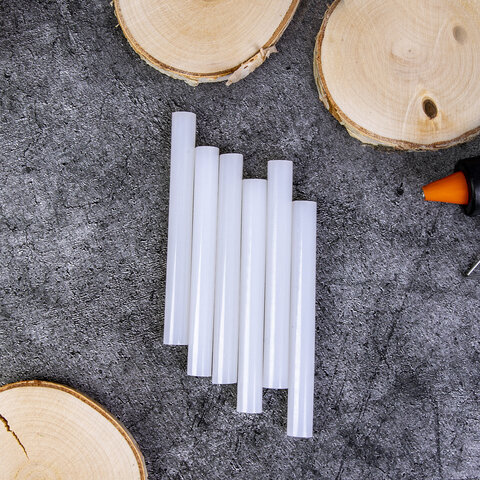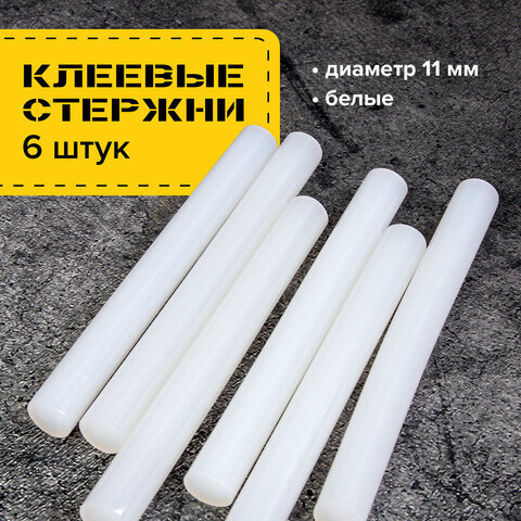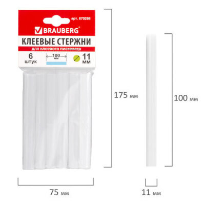 Клеевые стержни, диаметр 11 мм, длина 100 мм, белые, комплект 6 штук, BRAUBERG, европодвес, 670298