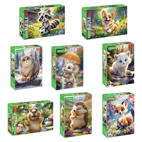 Пазл картонный "МИР ПУШИСТЫХ ЧУДЕС" 260 элементов АССОРТИ, 220х330 мм, HATBER