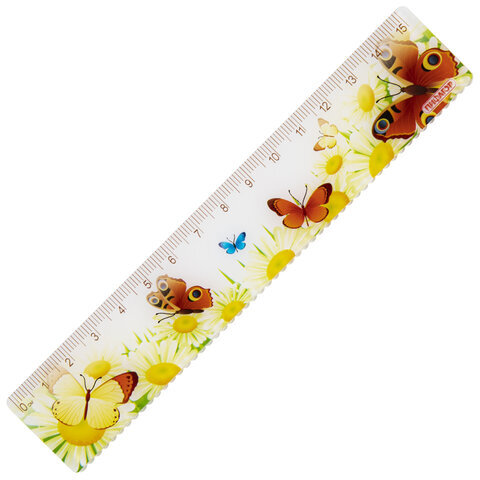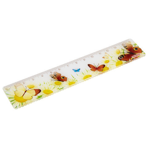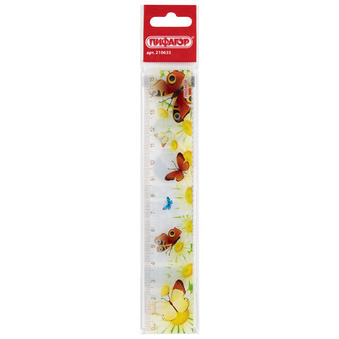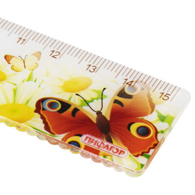 Линейка пластиковая 15 см, ПИФАГОР "Бабочки", цветная печать, с волнистым краем, европодвес, 210635