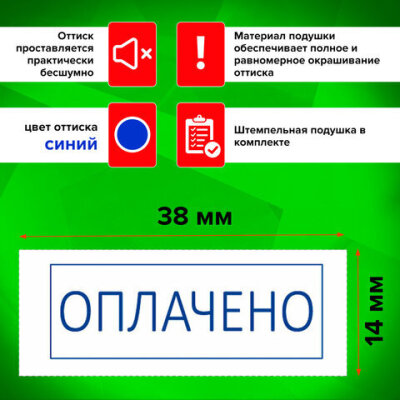 Штамп стандартный STAFF "ОПЛАЧЕНО", оттиск 38х14 мм, "Printer 9011T", 237421