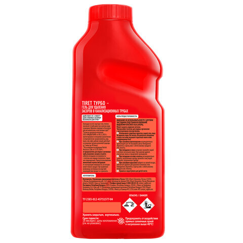 Средство для прочистки канализационных труб 500 мл, TIRET (Тирет) "Turbo", гель, 8147369
