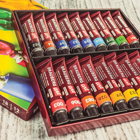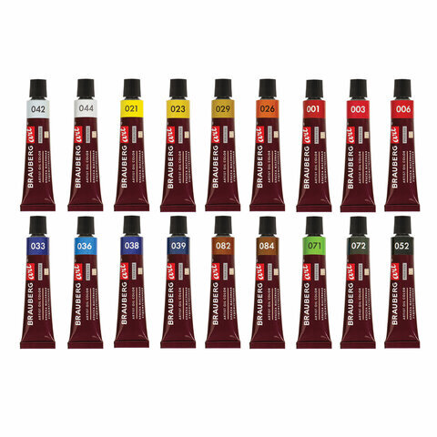 Краски масляные художественные BRAUBERG ART PREMIERE, 18 цв. по 12 мл, в тубах, 191456