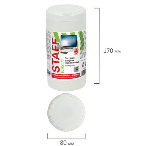 • Чистящие влажные салфетки STAFF станут незаменимым помощником по уходу за экранами мониторов, ноутбуков, планшетов, смартфонов, мебели, клавиатур, компьютеров (ПК) и других поверхностей.