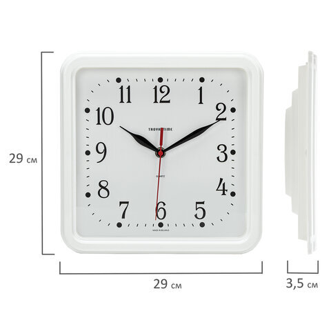 Часы настенные TROYKATIME (TROYKA) 81810835, квадрат, белые, белая рамка, 26х26х3,5 см