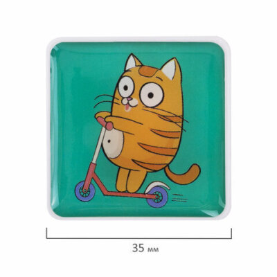 Квадратные стеклянные магниты BRAUBERG KIDS с ярким дизайном "Кот-энтузиаст" надежно прикрепляют листы бумаги к магнитно-маркерной поверхности досок, витрин, флипчартов и холодильников.