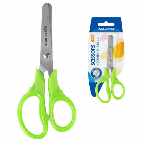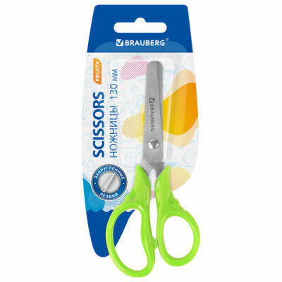 Ножницы BRAUBERG "FRUITY", 130 мм, ассорти, эргономичные ручки, закругленные лезвия, 236980
