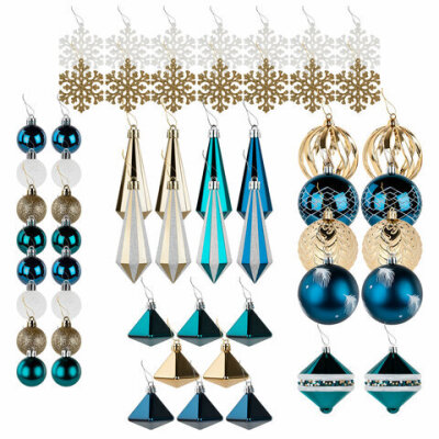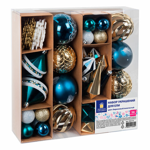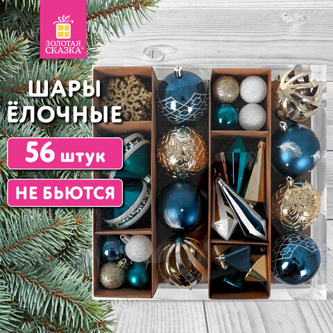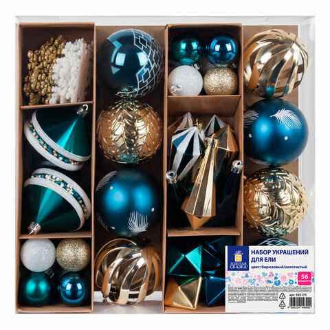 Шары ёлочные НАБОР 56 предметов, "Polar Light", бирюзовый/золото, пластик, ЗОЛОТАЯ СКАЗКА, 592175
