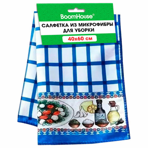 Салфетка из МИКРОФИБРЫ универсальная, 40х60 см, синяя клетка, орнамент, 240 г/м2, BOOMHOUSE (БУМХАУС), 700881