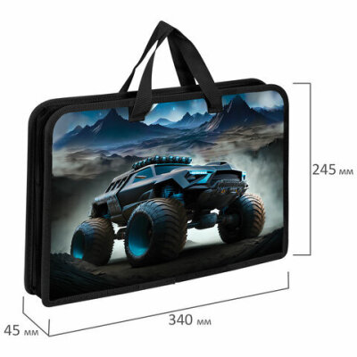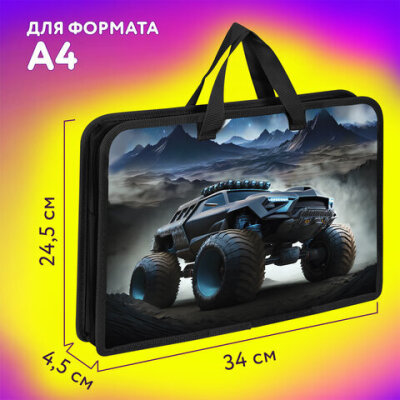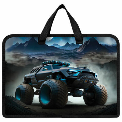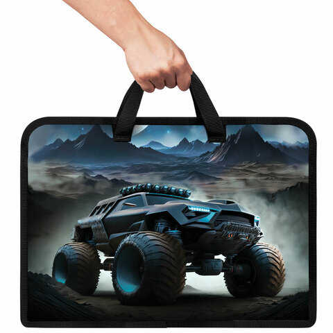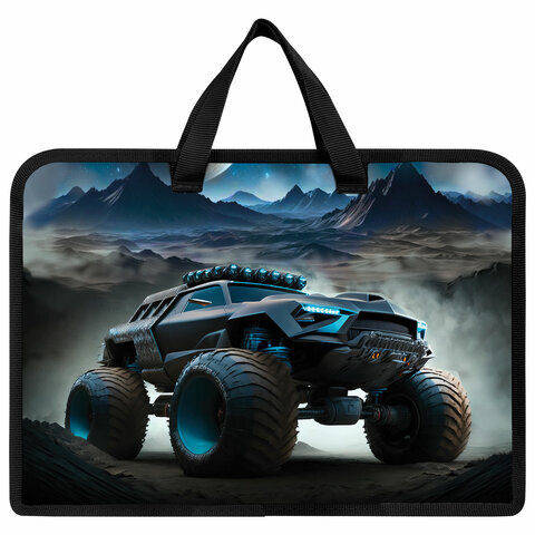 Папка на молнии с ручками ЮНЛАНДИЯ А4, 1 отделение, пластик, ширина 45 мм, "Space driver", 273360
