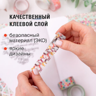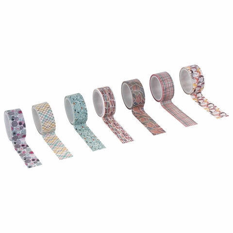 Клейкие WASHI-ленты для декора "Микс №3", 15 мм х 3 м, 7 цветов, рисовая бумага, ОСТРОВ СОКРОВИЩ, 661711