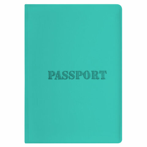 Обложка для паспорта, мягкий полиуретан, "PASSPORT", цвет "тиффани", STAFF, 238404