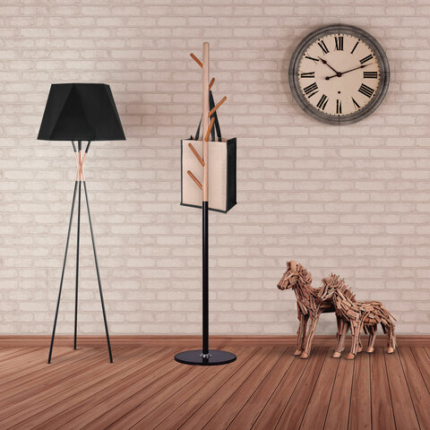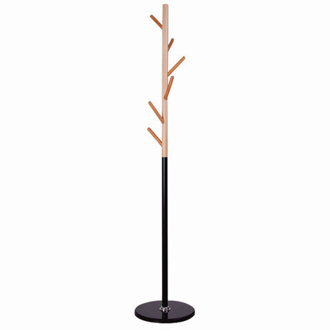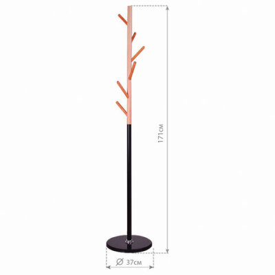 Вешалка-стойка BRABIX "CR-1906" на мраморном диске, металл черный/дерево бук, 6 крючков, 606441