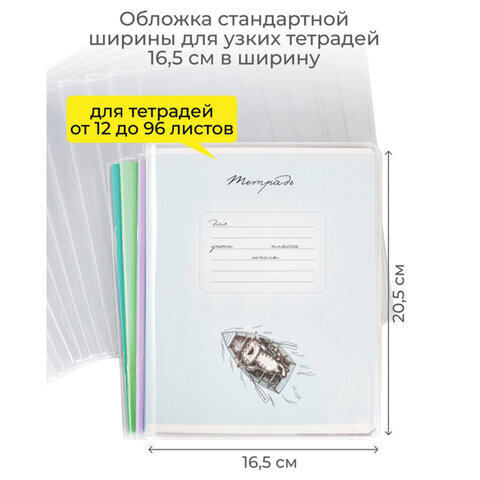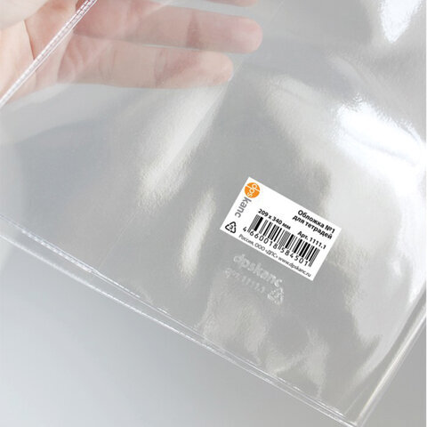 Обложка ПВХ со штрихкодом для тетрадей, ПЛОТНАЯ, 120 мкм, 209х340 мм, прозрачная, 1111.1, 1111,1
