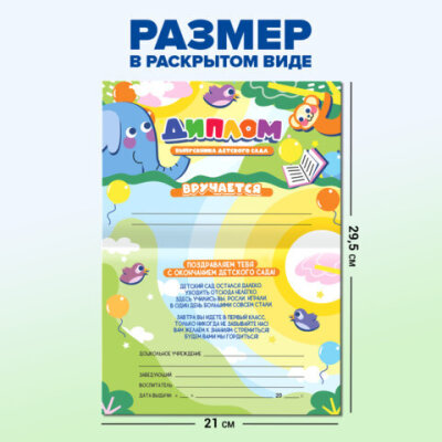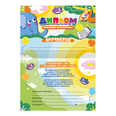 Диплом выпускника детского сада BRAUBERG предназначен для награждения детей по окончании обучения в дошкольном учреждении.