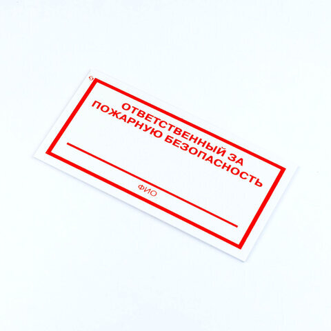 Знак "Ответственный за пожарную безопасность", КОМПЛЕКТ 3 штуки, 100х200х2 мм, пластик, F21