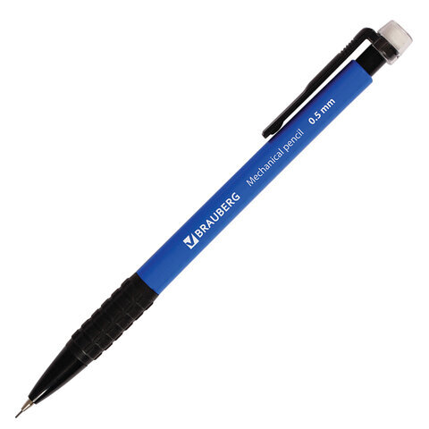 Карандаш механический 0,5 мм, BRAUBERG "Comfort", ластик, резиновый грип, корпус синий, 180283