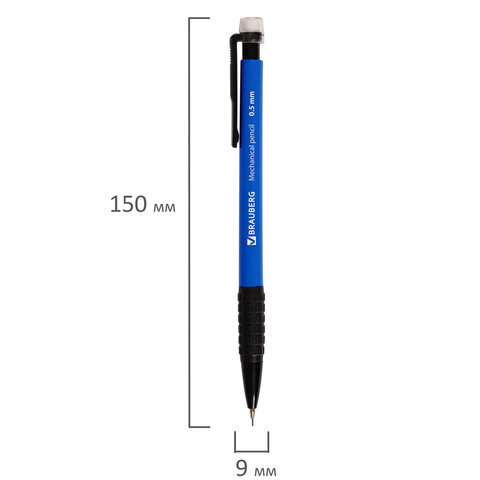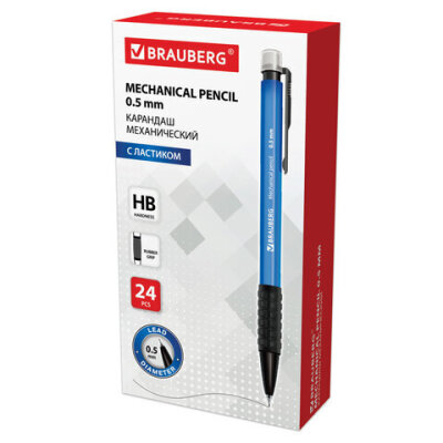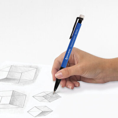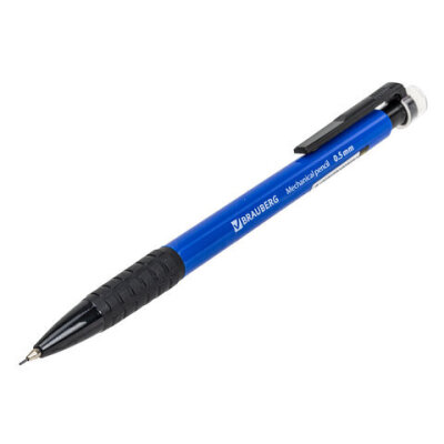 Механический карандаш BRAUBERG "Comfort" с корпусом синего цвета и и удобным резиновым упором, исключающим скольжение пальцев во время письма.