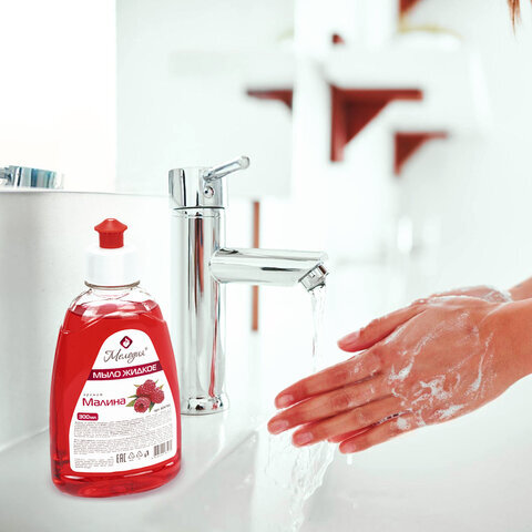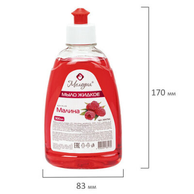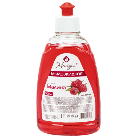 Мыло жидкое 300 мл, МЕЛОДИЯ "Малина", пуш-пул, 604784