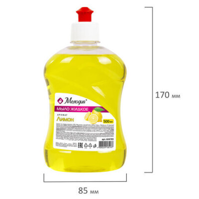Мыло жидкое 500 мл, МЕЛОДИЯ "Лимон", пуш-пул, 604785