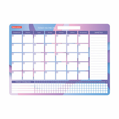 Магнитный планинг BRAUBERG - полезный подарок и незаменимый помощник в искусстве тайм-менеджмента. А с трекером еще никогда не было так просто выработать полезную привычку. Предназначен для письма маркерами для белых досок и меловыми маркерами.