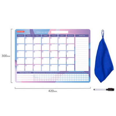 Планинг-трекер магнитный на холодильник, 42х30 см, с маркером и салфеткой, BRAUBERG, 237853