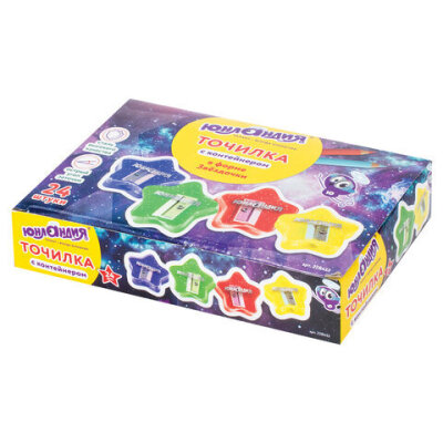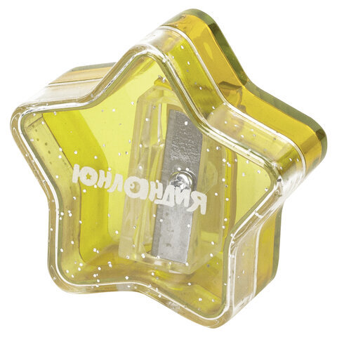 Точилка ЮНЛАНДИЯ "Звездочка", с контейнером, пластиковая, корпус ассорти, 228453