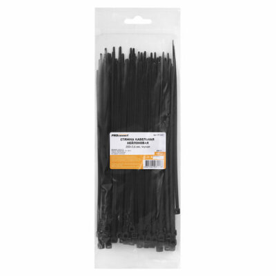 Хомуты (стяжки) нейлоновые, 3,6 мм х 200 мм, комплект 100 шт., черные, европодвес, 57-0201