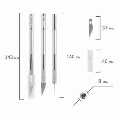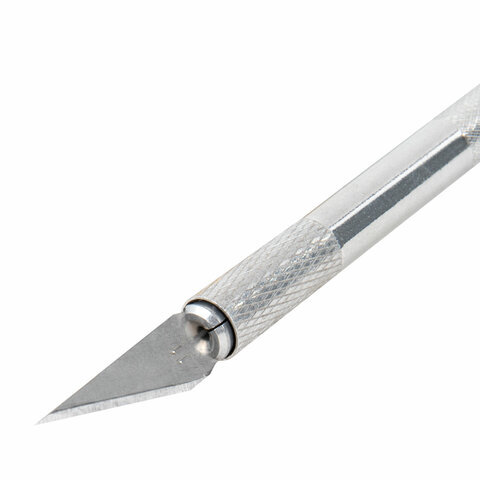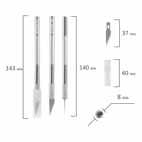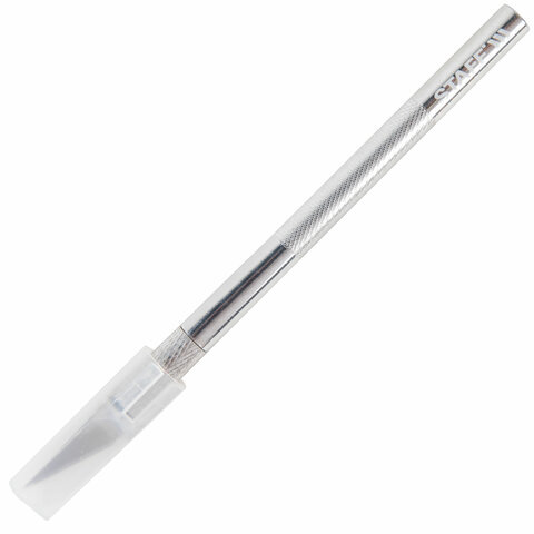 Нож макетный (скальпель) STAFF, 6 лезвий в комплекте, металлический корпус, блистер, 238258