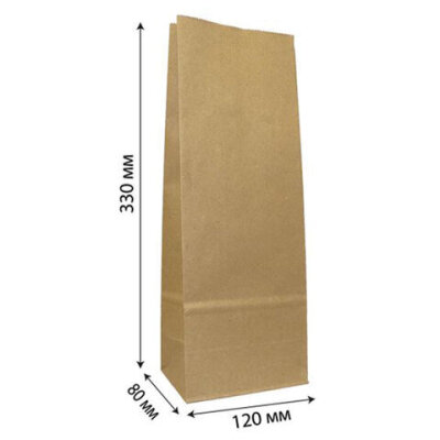 Крафт-пакет бумажный под бутылку, 12х8х33 см, плотность 90 г/м2