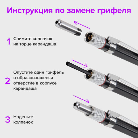 | Запасные грифели в комплекте | 24 шт |