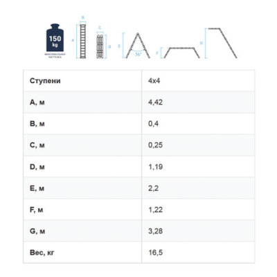 | Максимальная нагрузка | 150 кг |