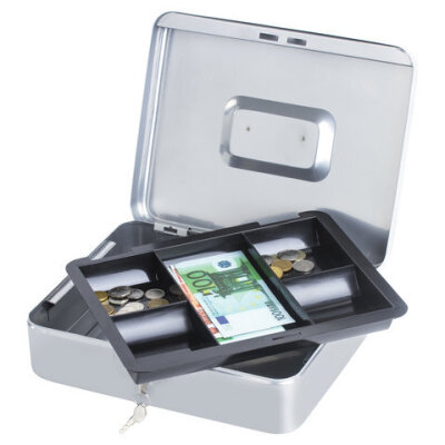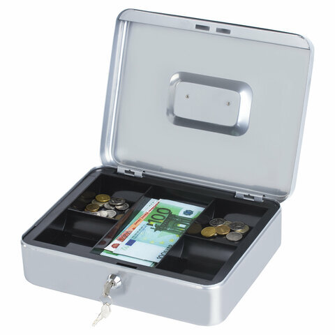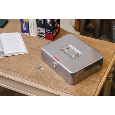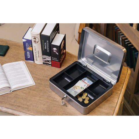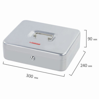 Ящик для денег, ценностей, документов, печатей, 90х240х300 мм, ключевой замок, серебристый, BRAUBERG, 291060