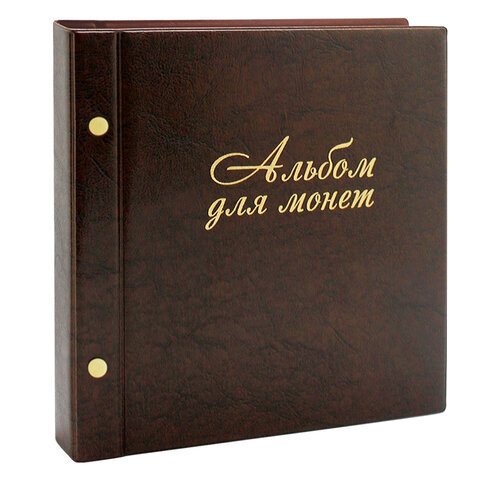 Альбом для монет и купюр на винтах универсальный, 224х224 мм, на 216 монет до D - 45 мм, выдвижные карманы, коричневый, "ДПС", 2855-204