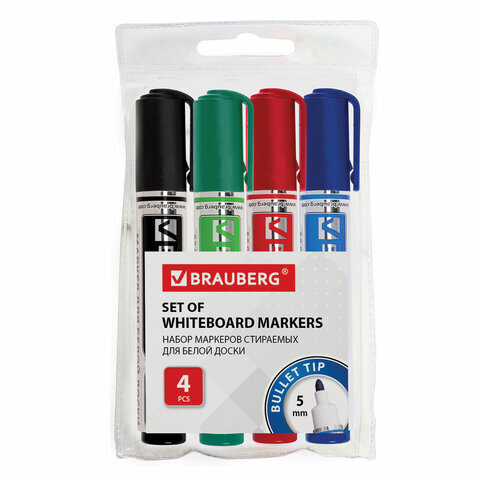 Высококачественный набор маркеров BRAUBERG "NEO" для белой доски. Предназначен для письма на досках с магнитно-маркерной поверхностью.