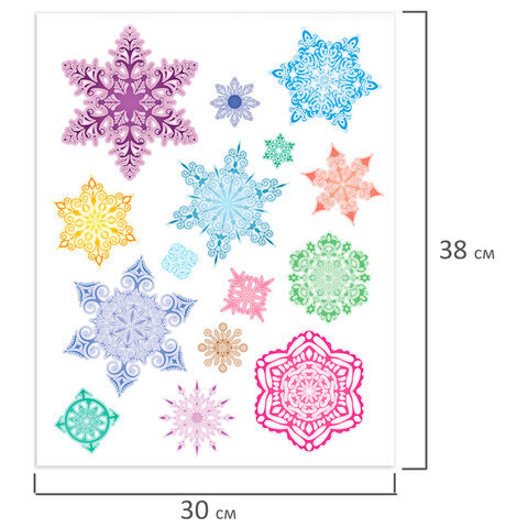 Украшение для окон и стекла ЗОЛОТАЯ СКАЗКА "Разноцветные снежинки 2", 30х38 см, ПВХ, 591212