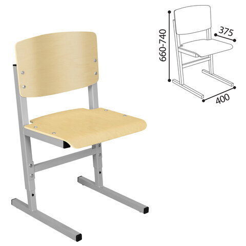 Стул ученический регулируемый СУТ.05-01, 400х375х660-740 мм, рост 4-6, серый каркас, фанера лак
