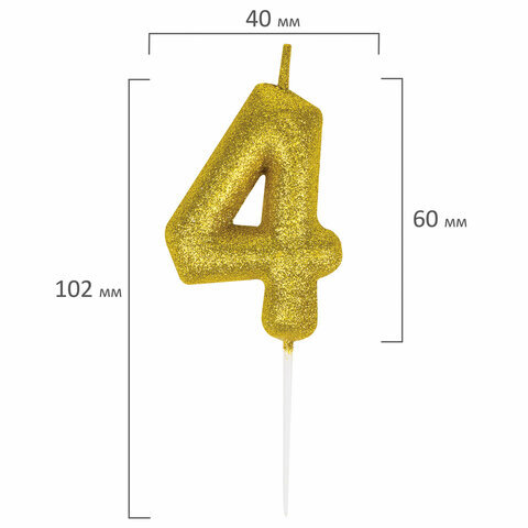 Свеча-цифра для торта "4" золотая с глиттером, 6 см, ЗОЛОТАЯ СКАЗКА, на шпажке, в блистере, 591417