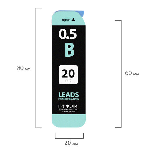 Грифели запасные 0,5 мм, B, BRAUBERG, КОМПЛЕКТ 20 шт., "Black Jack", 180449