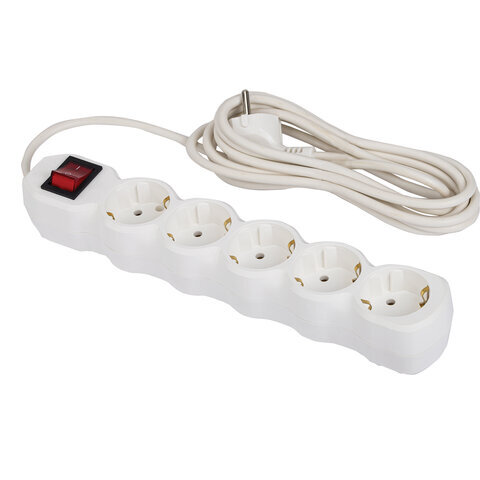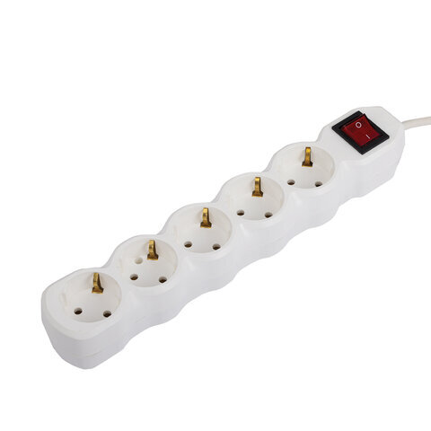 Сетевой фильтр СУ10-005 5 розеток, с заземлением, выключатель, 16 А, 3 м, белый, 7044