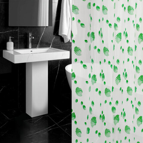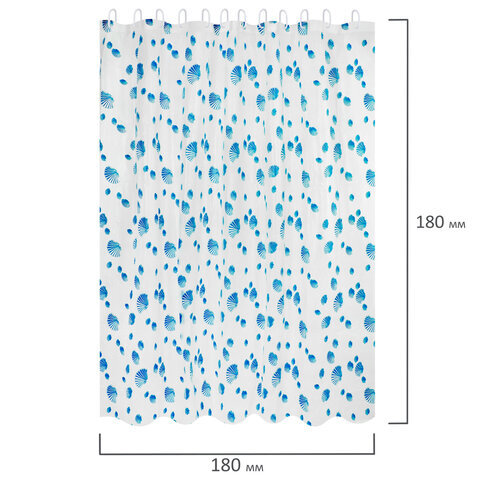 Шторка для ванной PEVA, 180х180 см, кольца в комплекте, 3 дизайна ассорти, МОРЕ, WBZ (ВБЗ), 700069